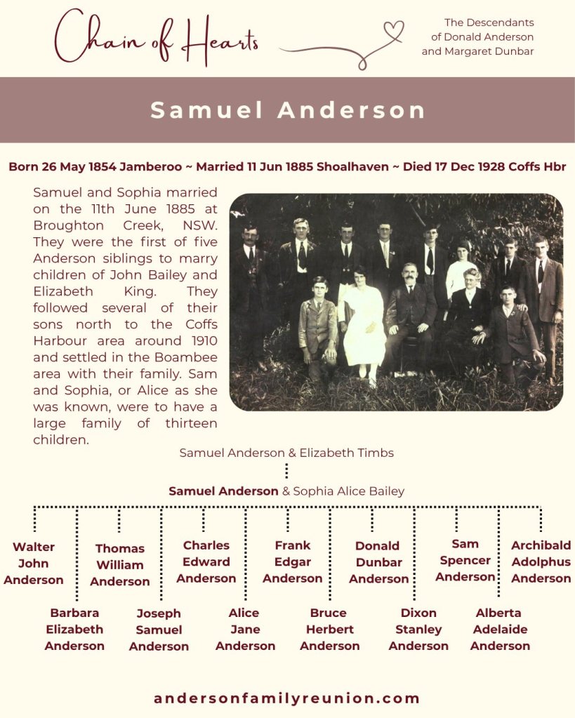 Samuel Anderson, the third child of Samuel Anderson and his wife Elizabeth Timbs. Samuel was the first of 5 Anderson siblings that would marry 5 Bailey siblings. Are you descended from Samuel and Alice? Lots of us are ![]()