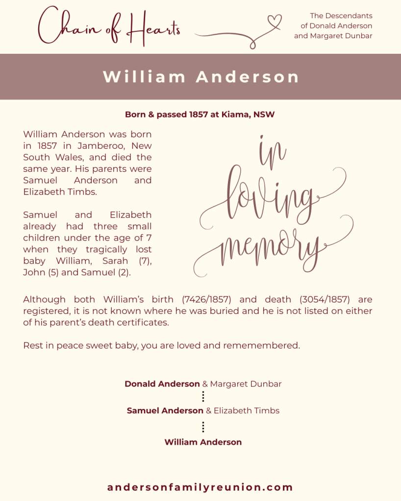 ❤ Baby William Anderson, the fourth child born to Samuel and Elizabeth Anderson ❤