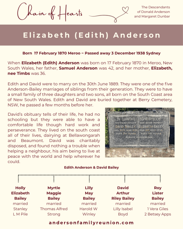 ❤ Elizabeth (Edith) Anderson, the 9th child born to Samuel and Elizabeth Anderson ❤