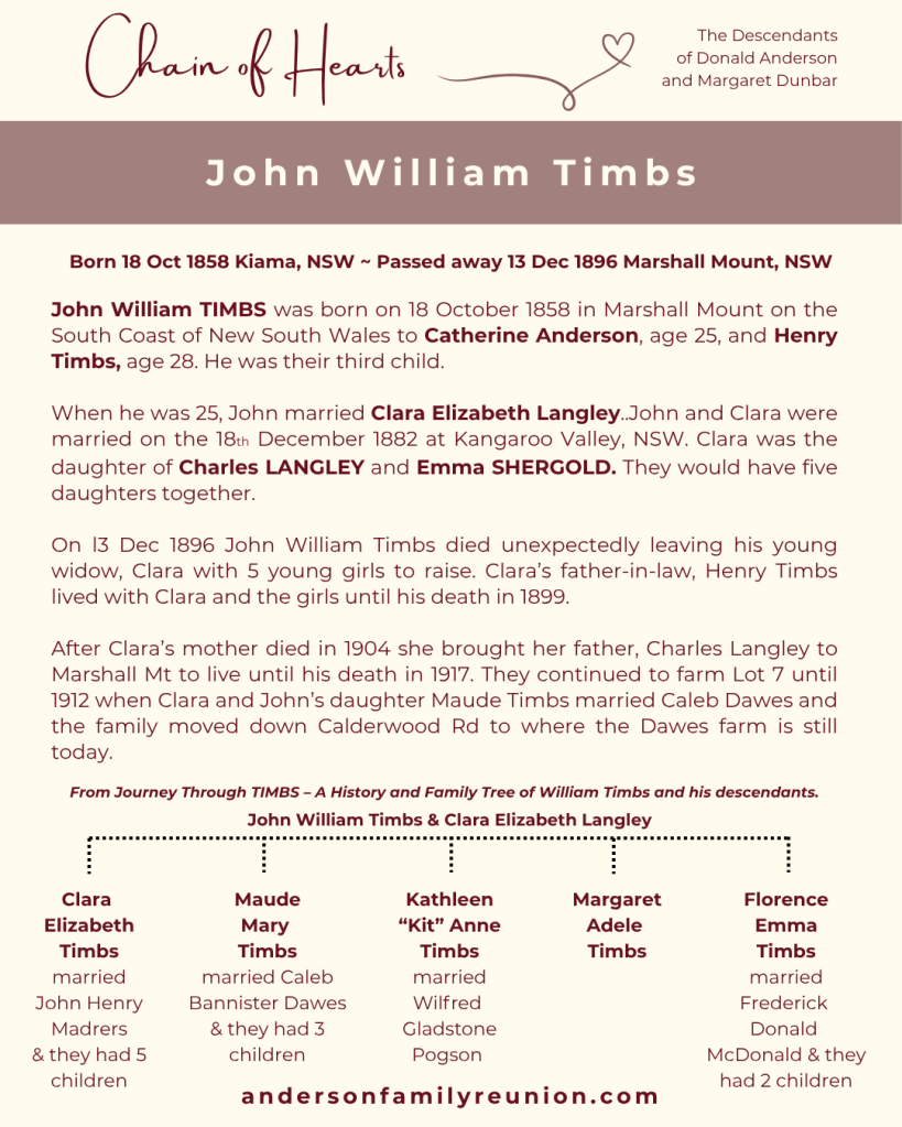 John married Clara Elizabeth Langley and they had 5 lovely daughters before he passed away tragically leaving Clara as a young widow with five little girls.