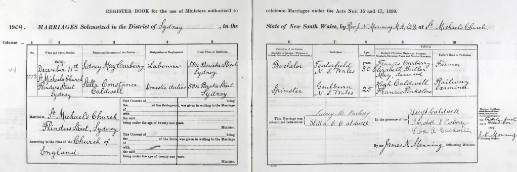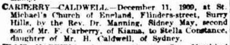 Sidney and Stella married on 11 December 1909 in Sydney, New South Wales.