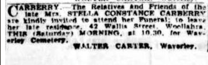 Stella later died on 22 February 1941 in Sydney, New South Wales, at the age of 56.