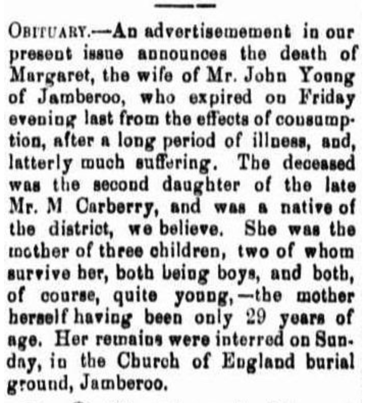 When Margaret Carberry was born on 3 February 1847 in Jamberoo, New South Wales, her father, Michael, was 42, and her mother, Ann, was 20.