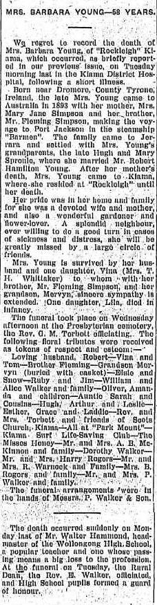 When Robert Hamilton Young was born on 14 December 1872 in New South Wales, his father, John, was 29 and his mother, Margaret, was 25. He married Barbara Simpson in 1898 in Kiama, New South Wales. They had two daughters during their marriage before Barbara passed away in 1937.