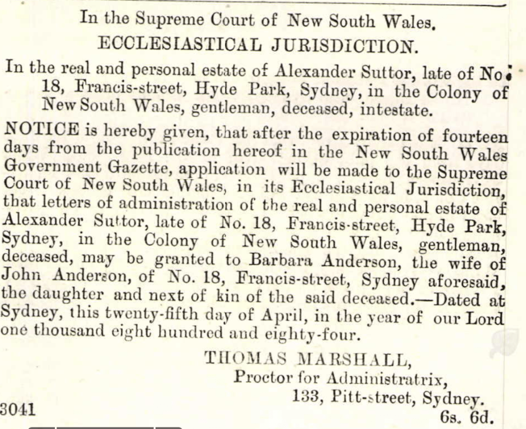 Both John and Barbara are listed on the death and probate notices for Barbara’s father in April 1884.