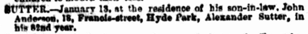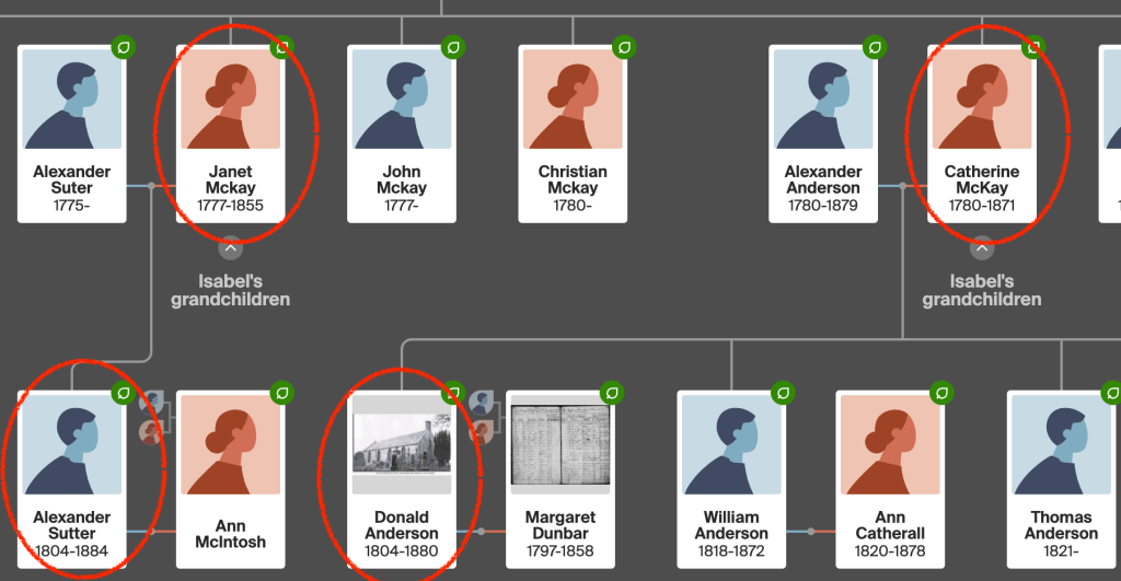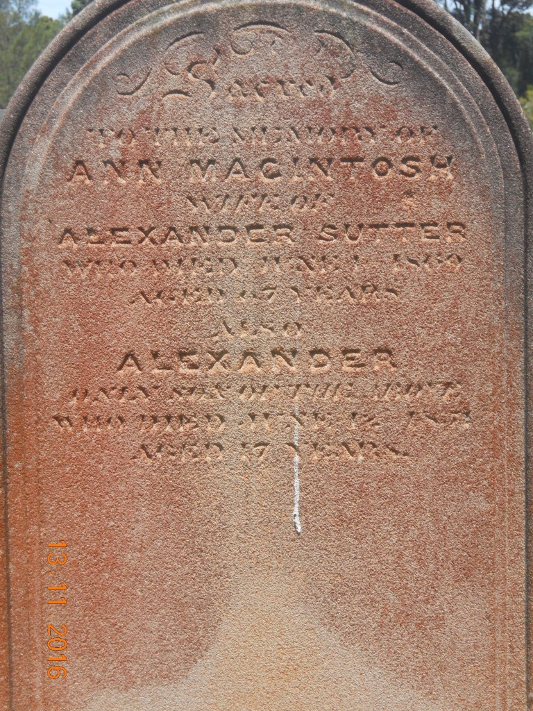 Aside from being cousins and travelling together from their homeland, the families were again linked forever together when Donald’s son John Anderson aged 28 would marry Alexander’s daughter Barbara Sutter, then aged 22 in 1859 (2109/1859).