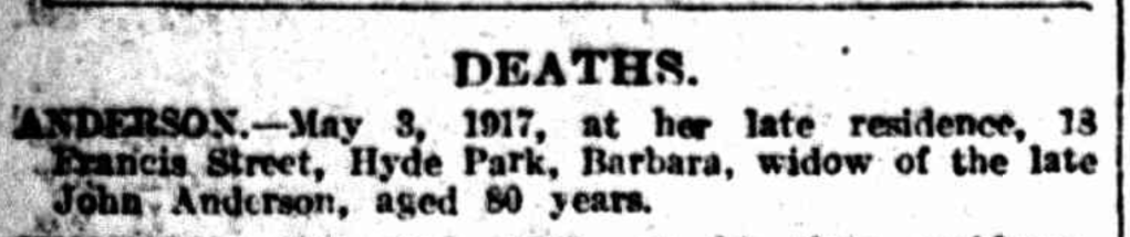 Barbara would pass away at home almost two years later to the day in 1917.